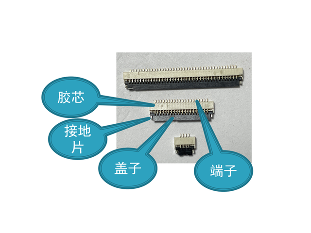 FPC連接器可實現薄型化,并且為抑制連接器之占用面積,而謀求小型化.高頻信號/傳輸之連接器.此連接器包含四部分組成: