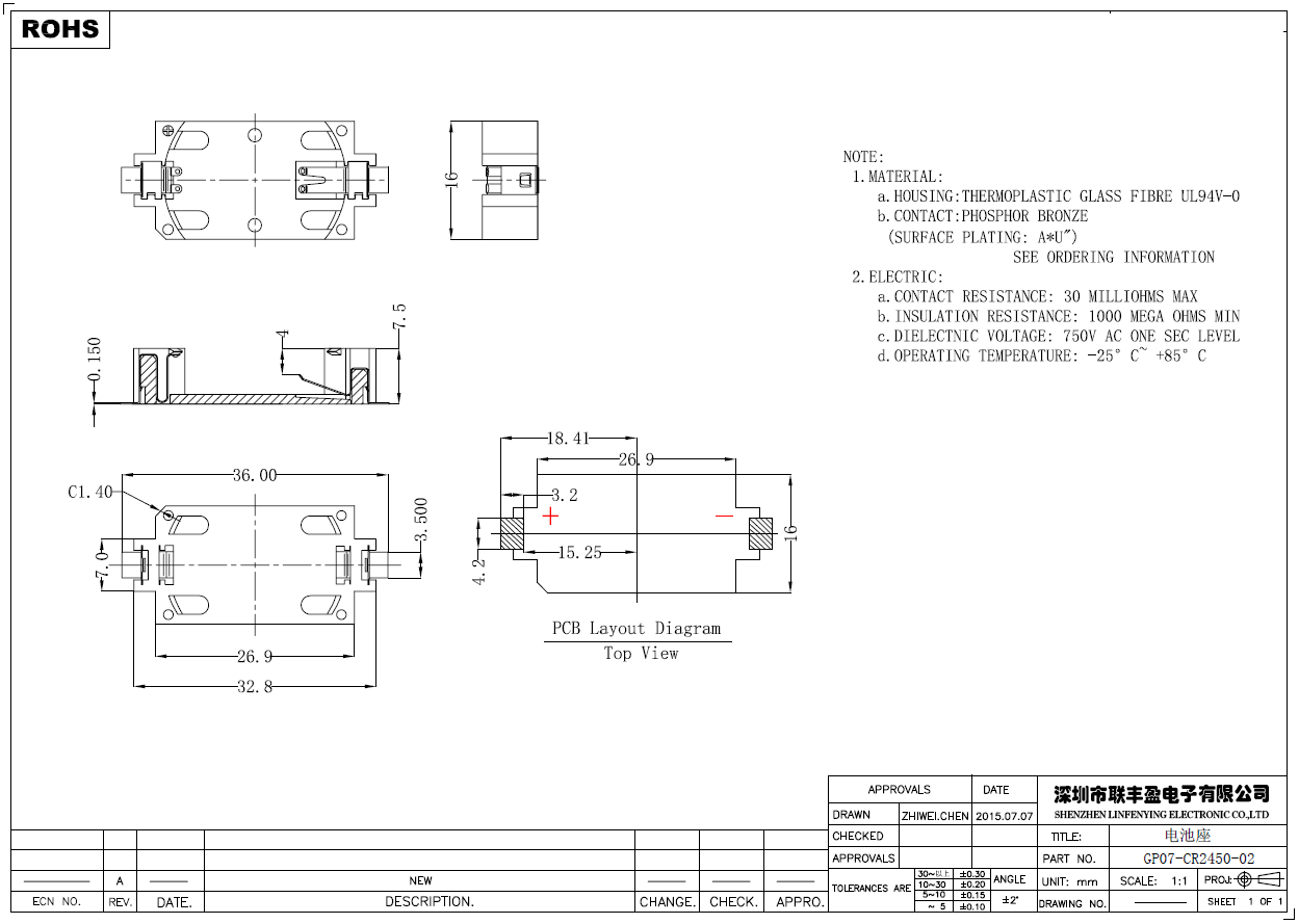 產品簡介品名:電池座產品型號:LFY07-CR2450-2電池型號:CR2450產品規格:SMT/貼片式備注:本色