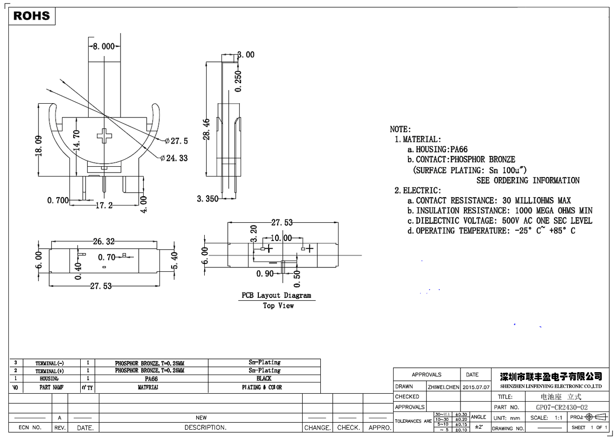 塑膠材質:1A=PBT BLACK ,1B=PA66 BLACK ,2A=PPA BROWN ,2B=PPA BLACK ,3A=PPS BROWN ,3B=PPS BLACK ,4A=LCP WHITE ,4B=LCP BLACK