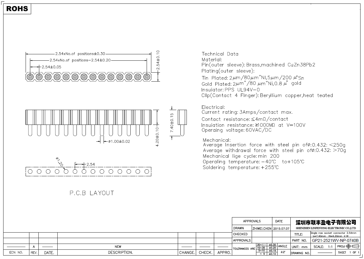 產品簡介品名:排母規格:插件/直式180°間距:2.54mmPIN數:2-40PIN備注:圓孔排母系列