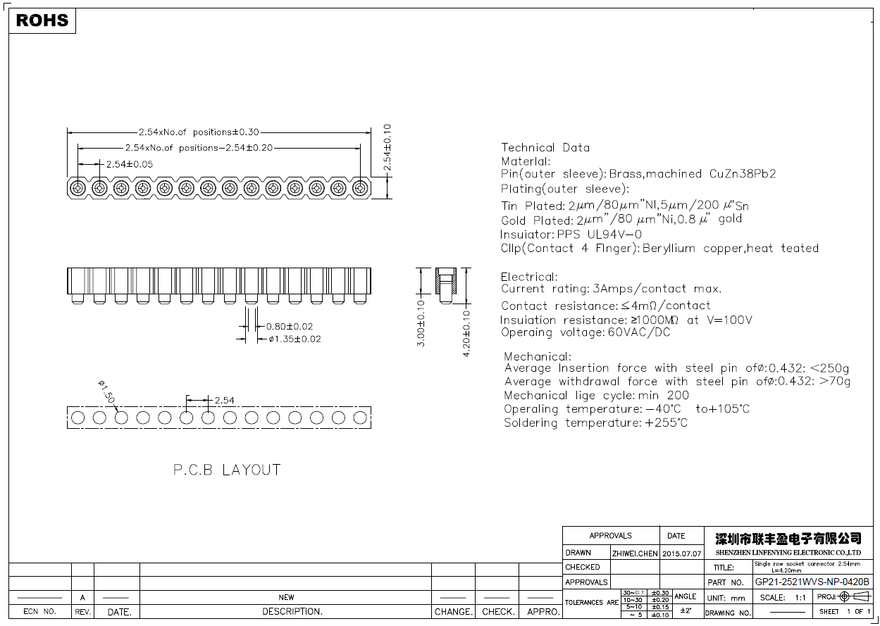 產(chǎn)品簡(jiǎn)介品名:排母規(guī)格:貼片/立式180°間距:2.54mmPIN數(shù):2-40PIN備注:圓孔排母系列